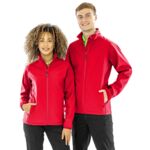 Two layer bonded softshell jacket with full zip front fastening. Relaxed fit. Two front zipped side pockets. Chin guard with internal storm flap. Adjustable shockcord hem. BSCI certified. SEDEX certified.