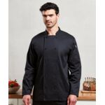The Premier PR900 is a durable, short-sleeve chef’s jacket designed for comfort and professional style. Crafted from a 170 gsm 65 % polyester / 35 % cotton twill, it’s built to withstand the demands of busy kitchens. Features include a neat mandarin stand collar, five-button wrap-over fastening with long-life resin buttons, and a practical double pen pocket on the left sleeve. Suitable for industrial laundering up to 85 °C or domestic washing up to 60 °C, it’s ideal for chefs seeking reliability and ease of care. Available in Black or White, sizes XS–5XL.