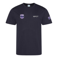 JC001 Performance T-shirt in Navy, featuring MPCT college logos, designed for comfort and durability during training and daily wear.