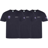 Pack of 3 JC001 Performance T-shirts in Navy with MPCT college logos, designed for comfort and durability during training and daily use.
